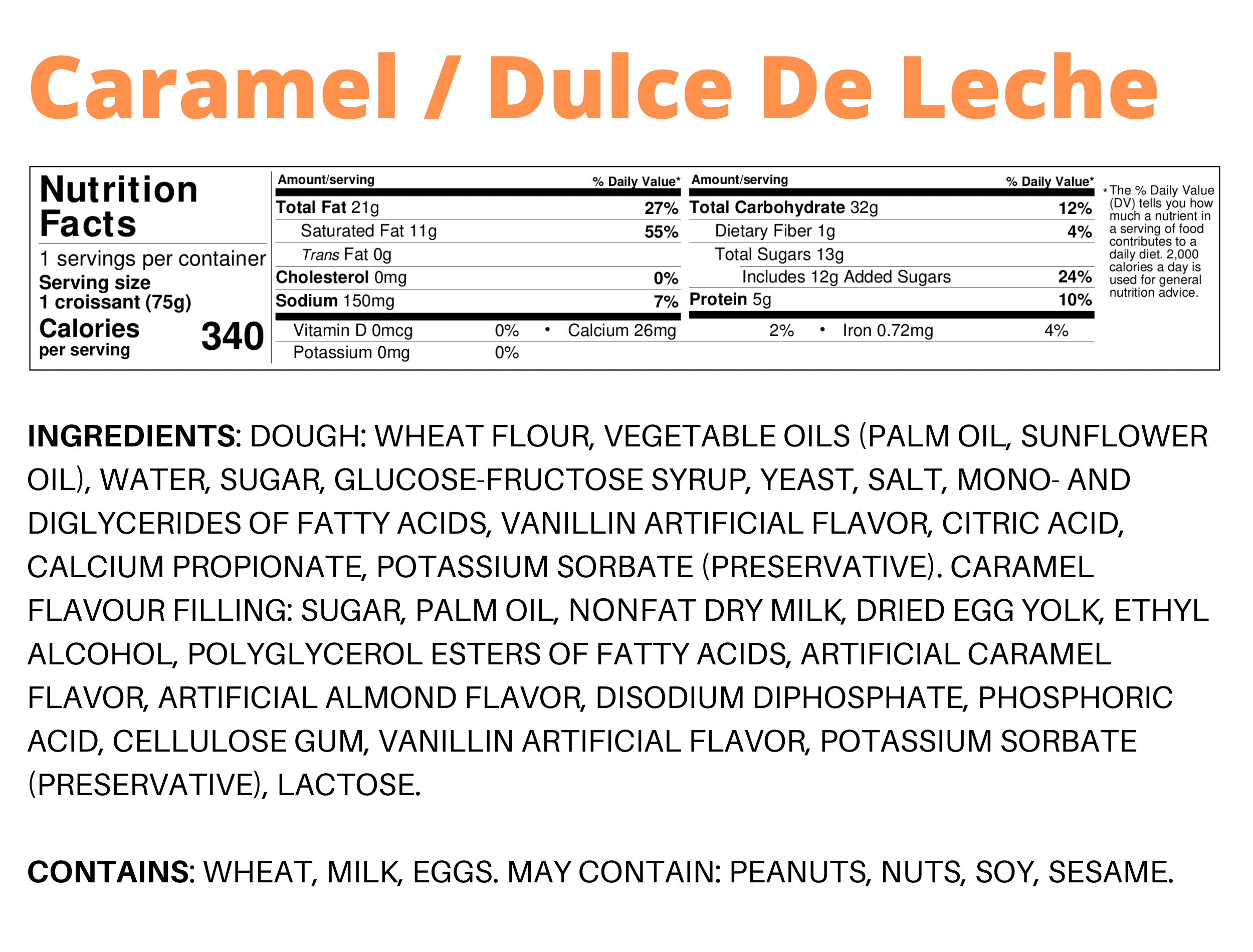 Individually packaged, ready-to-eat, creamy caramel filled croissants. Deliciously soft, layered pastry with creamy caramel filling. Enjoy for breakfast, as a snack, or for dessert.